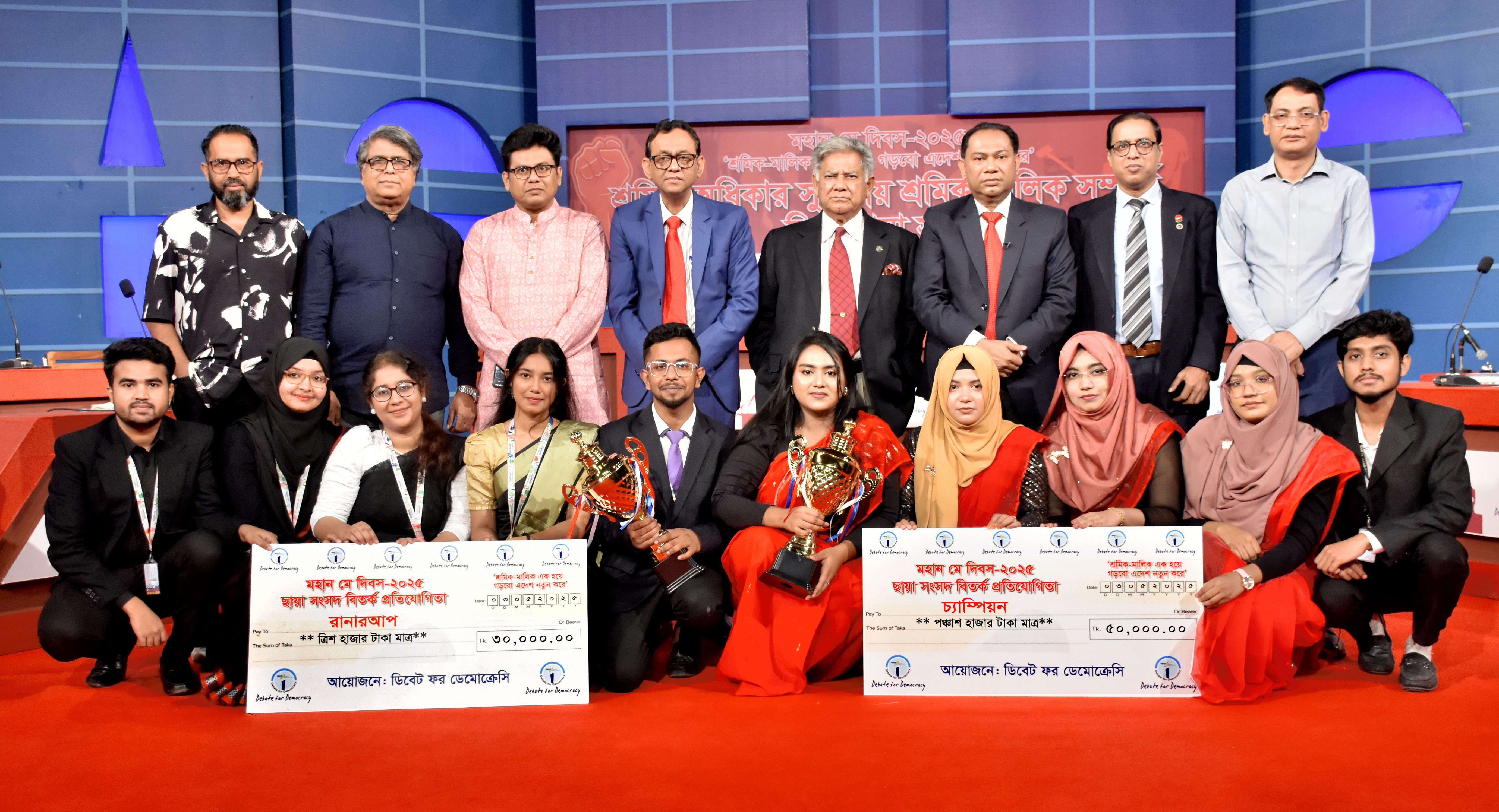 মহান মে দিবস-২০২৫ উদ্যাপনের অংশ হিসেবে ডিবেট ফর ডেমোক্রেসি’র আয়োজনে “শ্রমিক অধিকার সুরক্ষায় মালিক অপেক্ষা শ্রমিক সংগঠনের দায়িত্ব বেশী” শীর্ষক ছায়া সংসদে ড্যাফোডিল ইন্টারন্যাশনাল ইউনিভার্সিটি’র বিতার্কিকদের পরাজিত করে তেজগাঁও কলেজের বিতার্কিকরা বিজয়ী হয়। প্রতিযোগিতায় বিচারক ছিলেন অধ্যাপক আবু মুহাম্মদ রইস, সাংবাদিক মো. আলমগীর হোসেন, সাংবাদিক মো. তৌহিদুল ইসলাম, সাংবাদিক মো. আতিকুর রহমান ও জনাব নঈম ইমতিয়াজ নেয়ামুল। প্রতিযোগিতা শেষে চ্যাম্পিয়ন দলকে ৫০ হাজার ও রানারআপ দলকে ৩০ হাজার টাকাসহ ট্রফি, ক্রেস্ট ও সনদপত্র প্রদান করা হয়।